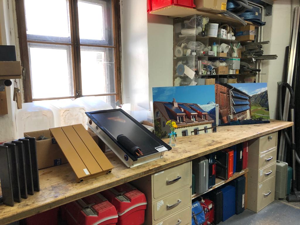 - Unser Energiedach erzeugt Strom und Warmwasser für die Werkstatt und die Wohnungen
